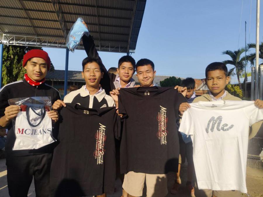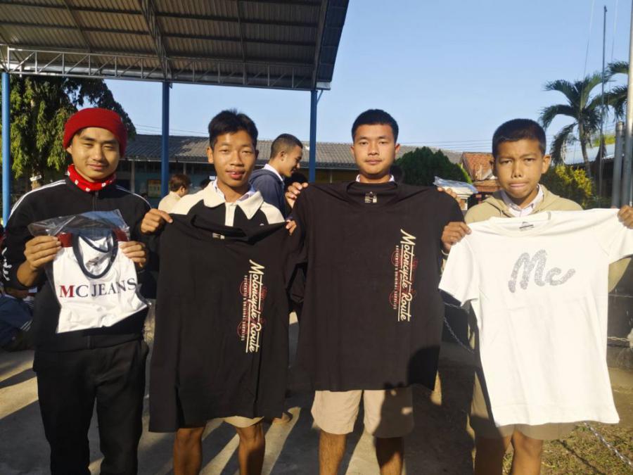 ขอขอบคุณ บริษัท ซีซี แอพพาเรล จำกัด ( CC APPAREL CO., LTD.) ที่ได้มอบเครื่องนุ่งห่ม เสื้อผ้า