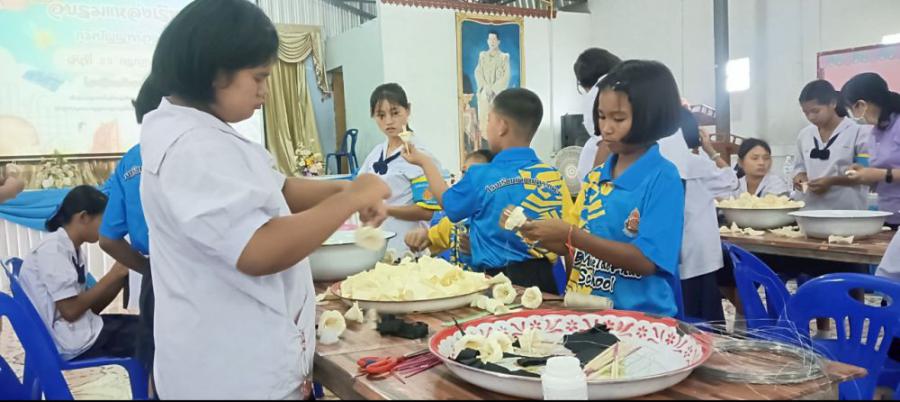 โครงการแหล่งเรียนรู้ภูมิปัญญาท้องถิ่น ประจำปีการศึกษา 2568 วันที่ 22 กรกฎาคม 2568 นายนุดนัย อ้นอำไพ ผู้อำนวยการโรงเรียนบ้านแม่ตาวแพะ พร้อมคณะครูและตัวแทนนักเรียน 30 คน เข้าร่วมกิจกรรมโครงการแหล่งเรียนรู้ภูมิปัญญาท้องถิ่นประจำปีการศึกษา 2568 โดยมีวัตถุประสงค์ เพื่อให้นักเรียนมีความรู้ด้านภูมิปัญญาท้องถิ่นและเกิดทักษะชีวิตจากประสบการณ์ตรง เพื่อส่งเสริมให้นักเรียนนำ ความรู้ที่ได้มาต่อยอดเป็นอาชีพเสริม และอนุรักษณ์ภูมิปัญญาท้องถิ่นให้คงอยู่สืบไป S:0