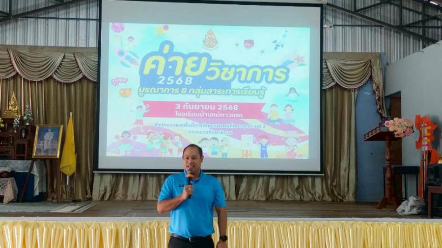 ค่ายวิชาการ เมื่อวันที่ 3 กันยายน พุทธศักราช 2568 นายนุดนัย อ้นอำไพ ผู้อำนวยการโรงเรียนบ้านแม่ตาวแพะ คณะครู บุคลากรทางการศึกษา ได้ร่วมกันจัดกิจกรรมโครงการค่ายวิชาการบูรณาการ 8 กลุ่มสาระการเรียนรู้ ให้แก่นักเรียนระดับชั้น ป.1-ป.6 โดยมีวัตถุประสงค์เพื่อพัฒนาความรู้ ความสามารถ และทักษะที่จำเป็นผ่านกิจกรรมที่หลากหลายและเชื่อมโยงองค์ความรู้ทั้ง 8 กลุ่มสาระ ได้แก่ ภาษาไทย คณิตศาสตร์ วิทยาศาสตร์ สังคมศึกษา ศาสนาและวัฒนธรรม สุขศึกษาและพลศึกษา ศิลปะ การงานอาชีพ และภาษาต่างประเทศ การจัดกิจกรรมครั้งนี้ นอกจากจะเป็นการสร้างเสริมทักษะทางวิชาการแล้ว ยังมุ่งเน้นให้ผู้เรียนได้ฝึกกระบวนการคิด การแก้ปัญหา การทำงานเป็นทีม และการมีเจตคติที่ดีต่อการเรียนรู้ อันจะนำไปสู่การพัฒนาตนเองอย่างสมดุล และสามารถดำรงชีวิตในสังคมได้อย่างมีคุณภาพ S:0