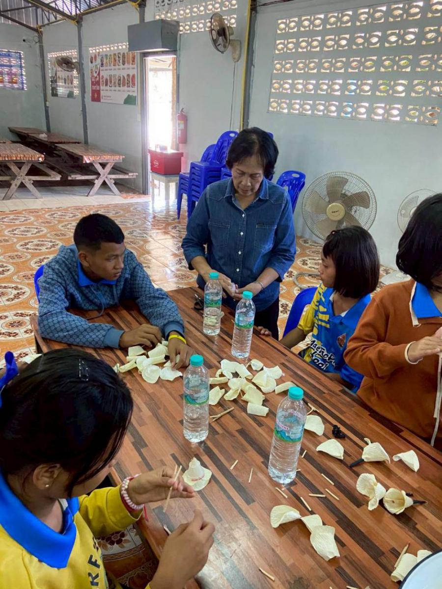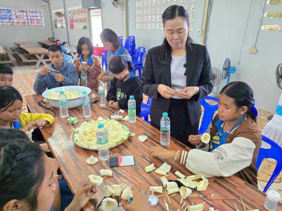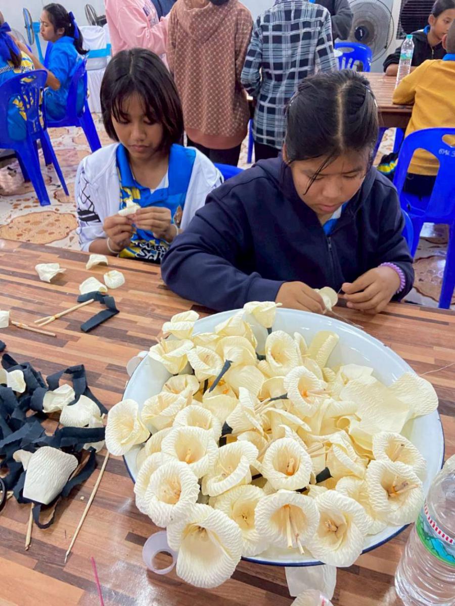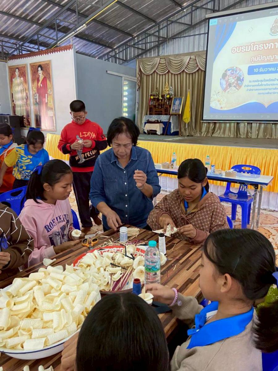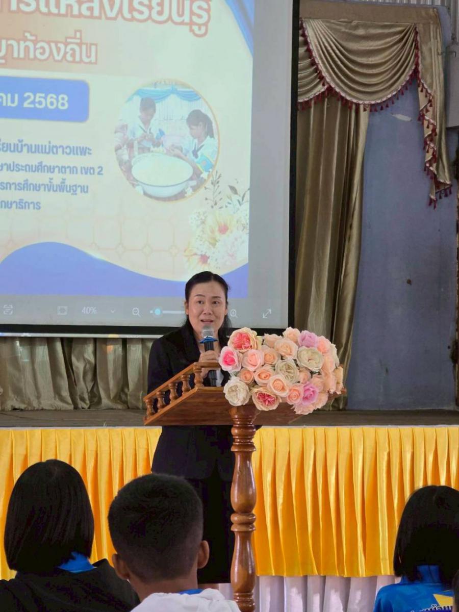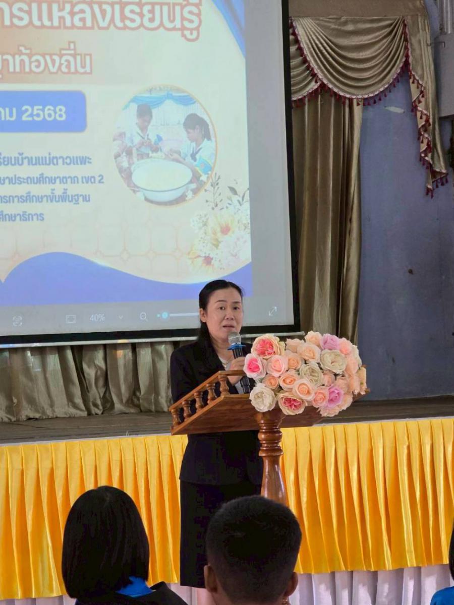เมื่อวันที่ 10 ธันวาคม 2568 นำโดย นางสาวเนตรนิภา ปัญญานันท์ ผู้อำนวยการโรงเรียนบ้านแม่ตาวใต้ รักษาการในตำแหน่งผู้อำนวยการโรงเรียนบ้านแม่ตาวแพะ พร้อมด้วยคณะครูและบุคลากรทางการศึกษา โรงเรียนบ้านแม่ตาวแพะ ได้ดำเนินการจัดอบรมแหล่งเรียนรู้ ภูมิปัญญาท้องถิ่น โดยมีปราชญ์ชาวบ้าน ผู้สืบทอดภูมิปัญญาท้องถิ่นด้าน การประดิษฐ์ดอกไม้จันทน์ ซึ่งเป็นงานศิลป์อันประณีตและเปี่ยมด้วยคุณค่าทางวัฒนธรรม ท่านได้กรุณามาให้ความรู้แก่คณะนักเรียนตั้งแต่ระดับ ชั้นประถมศึกษาปีที่ 3 ถึงปีที่ 6 รวมทั้งสิ้น 60 คน การอบรมครั้งนี้ไม่เพียงเป็นโอกาสให้นักเรียนได้เรียนรู้ทักษะการประดิษฐ์ดอกไม้จันทน์อย่างถูกต้องและสวยงามเท่านั้น แต่ยังช่วยปลูกฝังคุณธรรม ความอดทน ความประณีต และความเคารพรากเหง้าทางวัฒนธรรมของชุมชนอีกด้วย การได้เรียนรู้จากผู้รู้ตัวจริงในท้องถิ่นยังเป็นประสบการณ์อันมีค่า ที่จะช่วยให้นักเรียนเห็นคุณค่าของภูมิปัญญาที่มีอยู่รอบตัวและนำไปสืบสานต่อไปในอนาคต จึงขอขอบคุณปราชญ์ชาวบ้านที่สละเวลา พร้อมทั้งนักเรียนทุกคนที่ตั้งใจเข้าร่วมกิจกรรมอันก่อให้เกิดความรู้และแรงบันดาลใจในครั้งนี้เป็นอย่างยิ่ง S:0