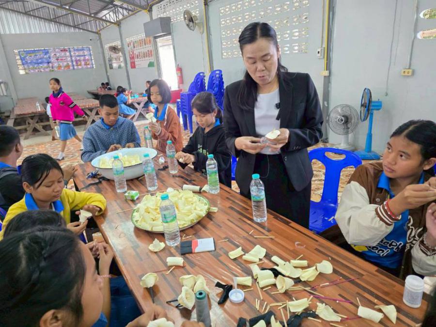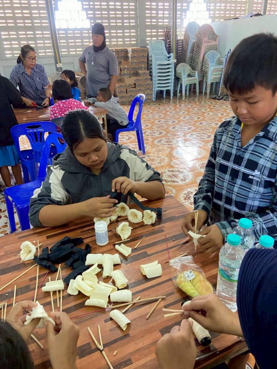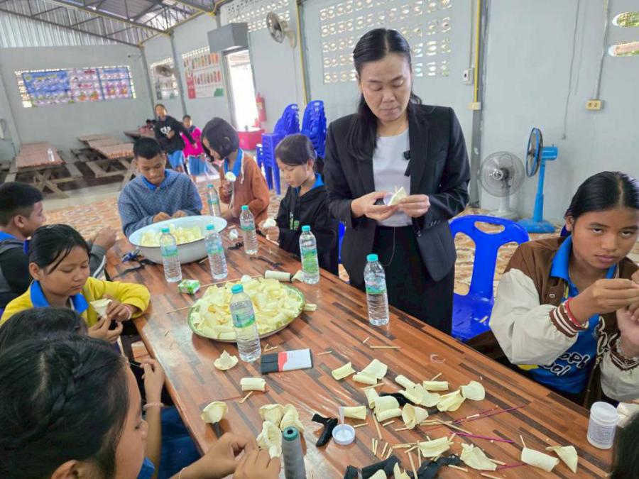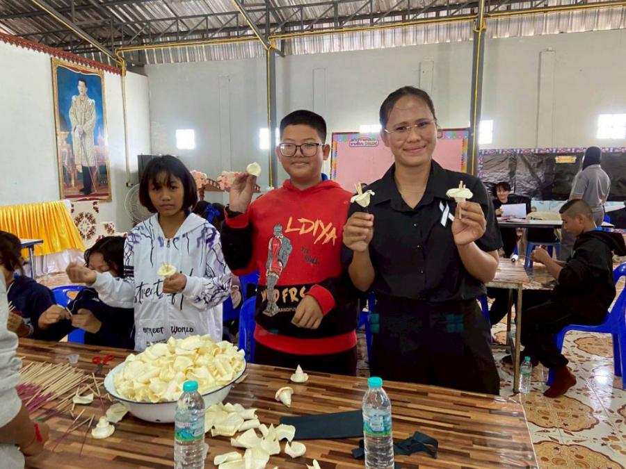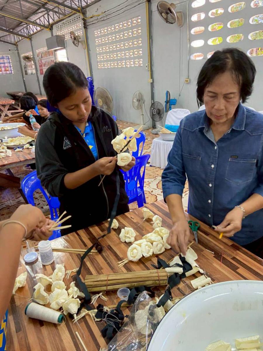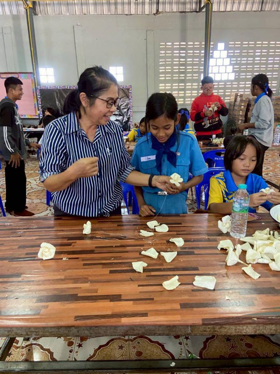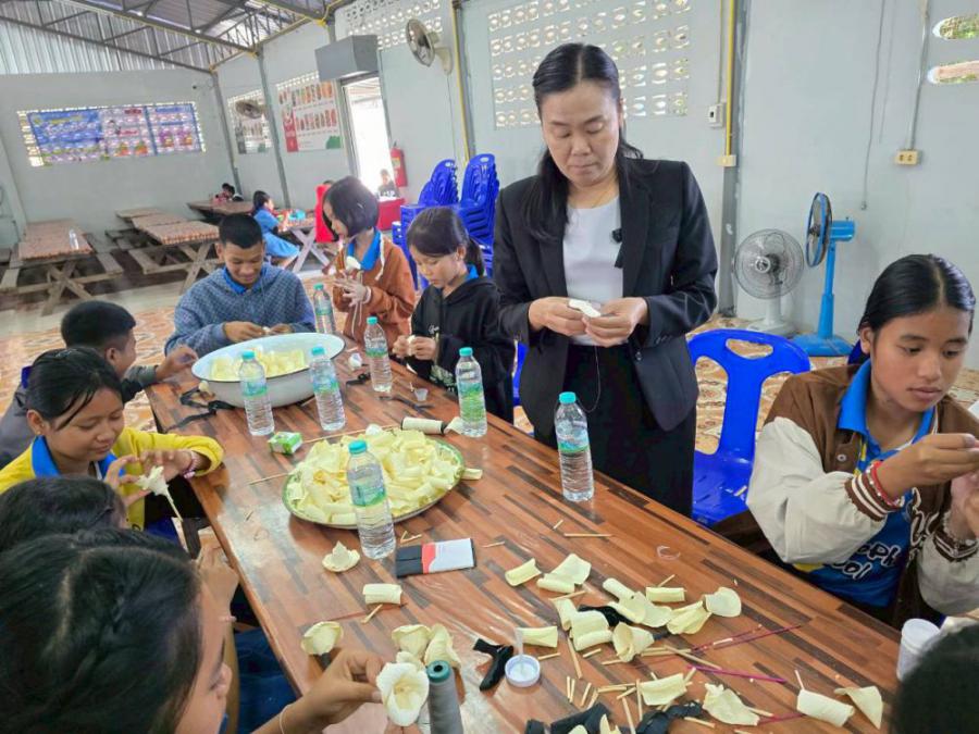 เมื่อวันที่ 10 ธันวาคม 2568 นำโดย นางสาวเนตรนิภา ปัญญานันท์ ผู้อำนวยการโรงเรียนบ้านแม่ตาวใต้ รักษาการในตำแหน่งผู้อำนวยการโรงเรียนบ้านแม่ตาวแพะ พร้อมด้วยคณะครูและบุคลากรทางการศึกษา โรงเรียนบ้านแม่ตาวแพะ ได้ดำเนินการจัดอบรมแหล่งเรียนรู้ ภูมิปัญญาท้องถิ่น โดยมีปราชญ์ชาวบ้าน ผู้สืบทอดภูมิปัญญาท้องถิ่นด้าน การประดิษฐ์ดอกไม้จันทน์ ซึ่งเป็นงานศิลป์อันประณีตและเปี่ยมด้วยคุณค่าทางวัฒนธรรม ท่านได้กรุณามาให้ความรู้แก่คณะนักเรียนตั้งแต่ระดับ ชั้นประถมศึกษาปีที่ 3 ถึงปีที่ 6 รวมทั้งสิ้น 60 คน การอบรมครั้งนี้ไม่เพียงเป็นโอกาสให้นักเรียนได้เรียนรู้ทักษะการประดิษฐ์ดอกไม้จันทน์อย่างถูกต้องและสวยงามเท่านั้น แต่ยังช่วยปลูกฝังคุณธรรม ความอดทน ความประณีต และความเคารพรากเหง้าทางวัฒนธรรมของชุมชนอีกด้วย การได้เรียนรู้จากผู้รู้ตัวจริงในท้องถิ่นยังเป็นประสบการณ์อันมีค่า ที่จะช่วยให้นักเรียนเห็นคุณค่าของภูมิปัญญาที่มีอยู่รอบตัวและนำไปสืบสานต่อไปในอนาคต จึงขอขอบคุณปราชญ์ชาวบ้านที่สละเวลา พร้อมทั้งนักเรียนทุกคนที่ตั้งใจเข้าร่วมกิจกรรมอันก่อให้เกิดความรู้และแรงบันดาลใจในครั้งนี้เป็นอย่างยิ่ง S:0