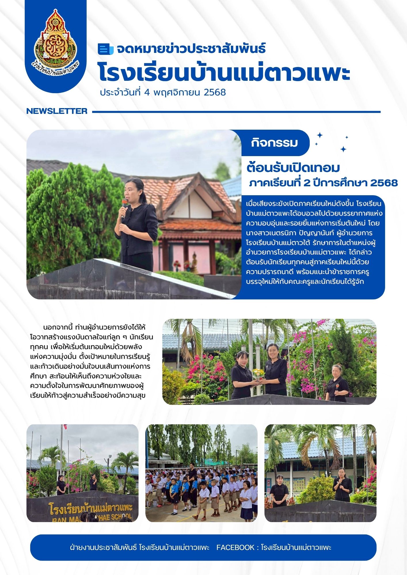 ต้อนรับเปิดเทอม ภาคเรียนที่ 2 ปีการศึกษา 2568